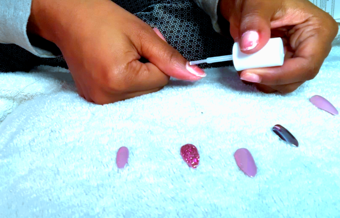 Step 1 putting on fake nails